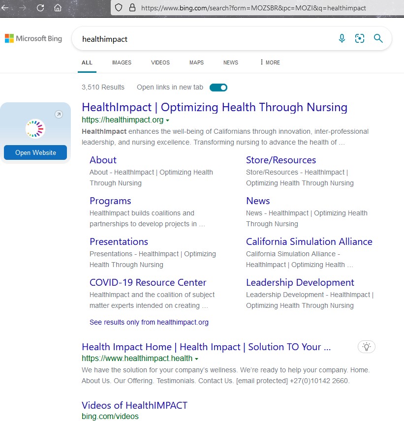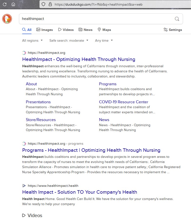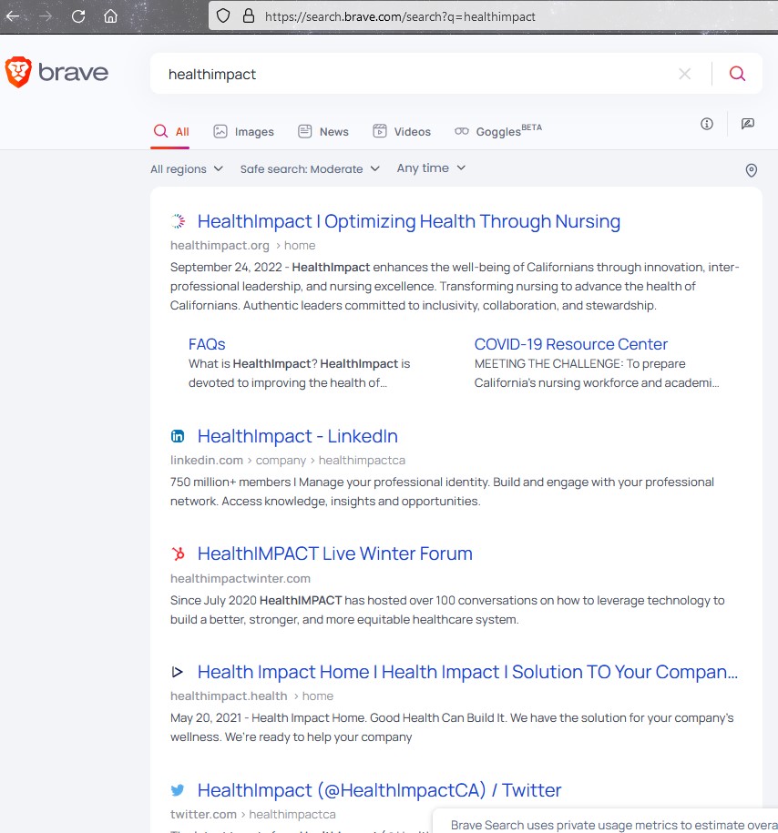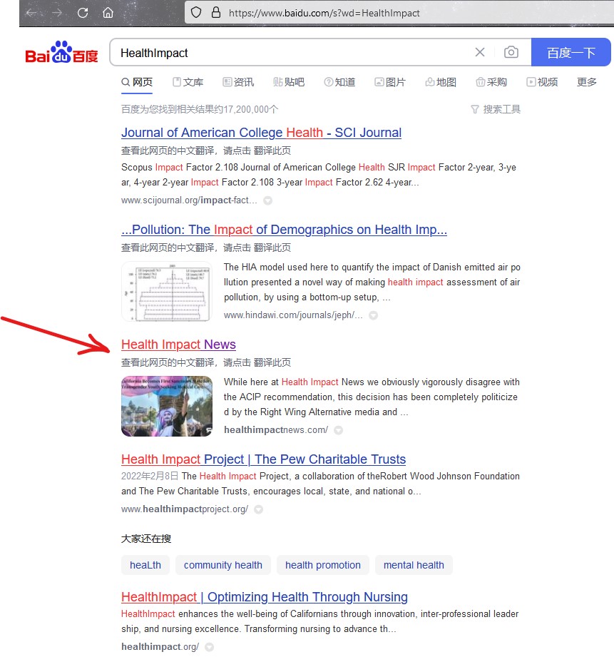 Dakle, samo dva pretraživača (Yandex i Baidu) su među prvim rezultatima ponudili healtimpactnews.com.