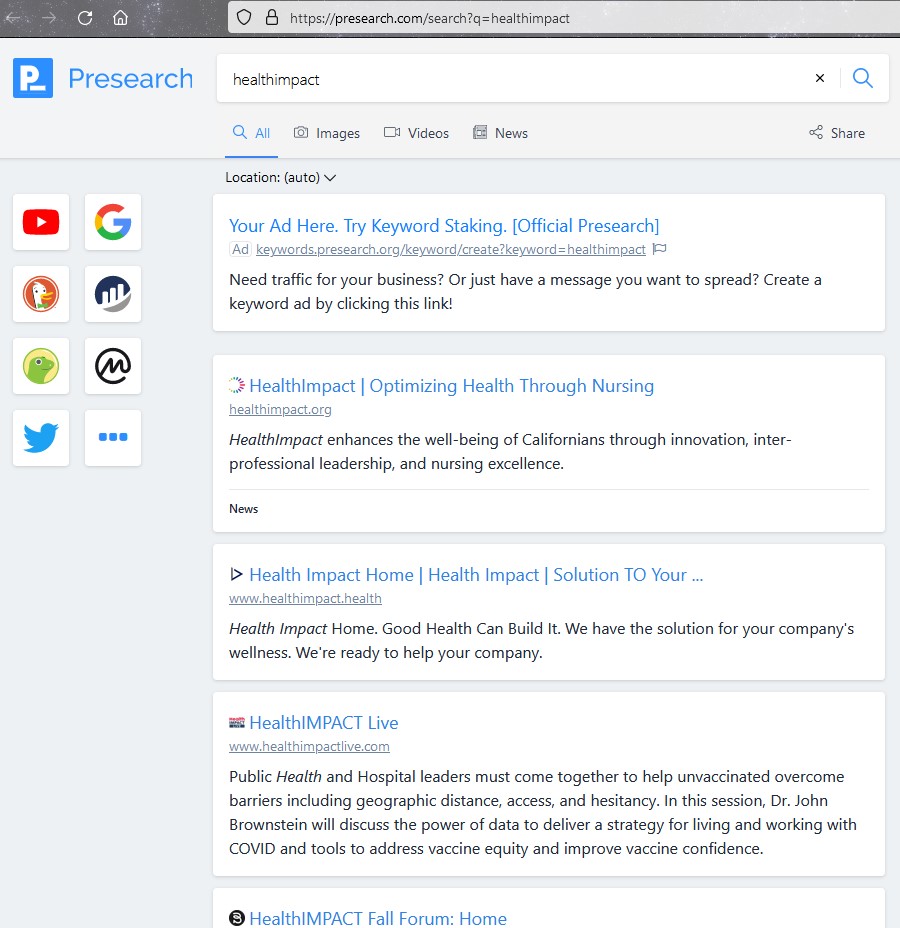 Zašto? Želimo da vidimo da li će neki od pretraživača da na prvoj strani pokaže rezultat za Healtimpactnews.com ![]()