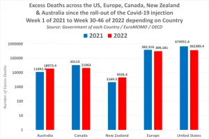 Šokantno, čak i zemlje kao što su Novi Zeland, Australija i Kanada beleže višak smrtnih slučajeva koji se nije smanjio od uvođenja vakcine protiv Kovida19.