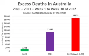Do kraja jula 2022. bilo je zapanjujućih 18.973 viška smrtnih slučajeva u Australiji – povećanje od 1.356% u odnosu na 2020.