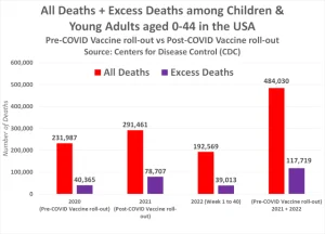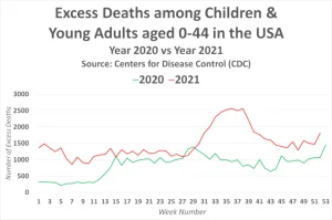 Stoga ne čudi saznanje da tajni izveštaj CDC-a potvrđuje da je gotovo pola miliona američke dece i mladih odraslih umrlo nakon uvođenja vakcine protiv Kovida19, što je rezultiralo sa skoro 118.000 viška smrtnih slučajeva u odnosu na petogodišnji prosek 2015.-2019.