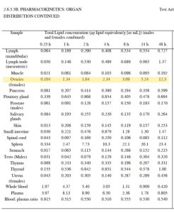 U prvih 15 minuta nakon inekcije, ukupna koncentracija lipida u jajnicima je iznosila 0,104 ml, ali se povećala na 1,34 ml nakon samo jednog sata, 2,34 ml nakon četiri sata i 12,3 ml nakon 48 sati.