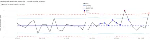U to vreme, PHS je rekao da činjenica da je gornja kontrolna granica prekoračena ” ukazuje da postoji veća verovatnoća da postoje faktori izvan slučajnih varijacija koji su doprineli broju smrtnih slučajeva koji su se dogodili “.