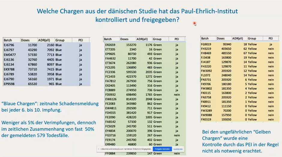 Nedavno su se pojavili u onlajn programu Punkt.Preradović nemačke novinarke Milene Preradović kako bi razgovarali o varijabilnosti serije. Njihova polazna tačka bila je nedavna danska studija koja pokazuje ogromne varijacije u neželjenim događajima povezanim sa različitim serijama vakcine Pfizer-BioNTech, ili BNT162b2 prema njenom naučnom kodnom nazivu. Slika ispod iz danske studije ilustruje ovu varijaciju.